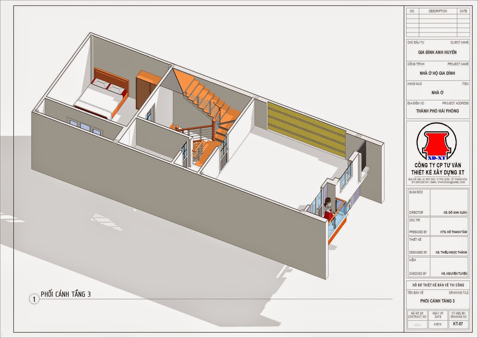 Phương án nhà anh Huyên - Hải Phòng: Diện tích đất 5.5x13.5m, 3 tầng: